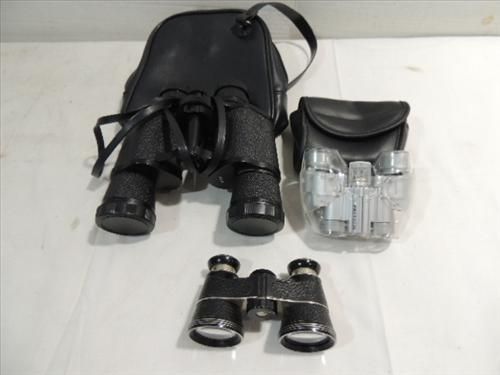 LOT 3 BINOCULARS: VINTAGE OPRA GLASSES, ENSIGN 7X35 FIELD GLASSES AND PROTOCOL GLASSES. AS SHOWN. VIEW PICTURE FOR DETAIL.