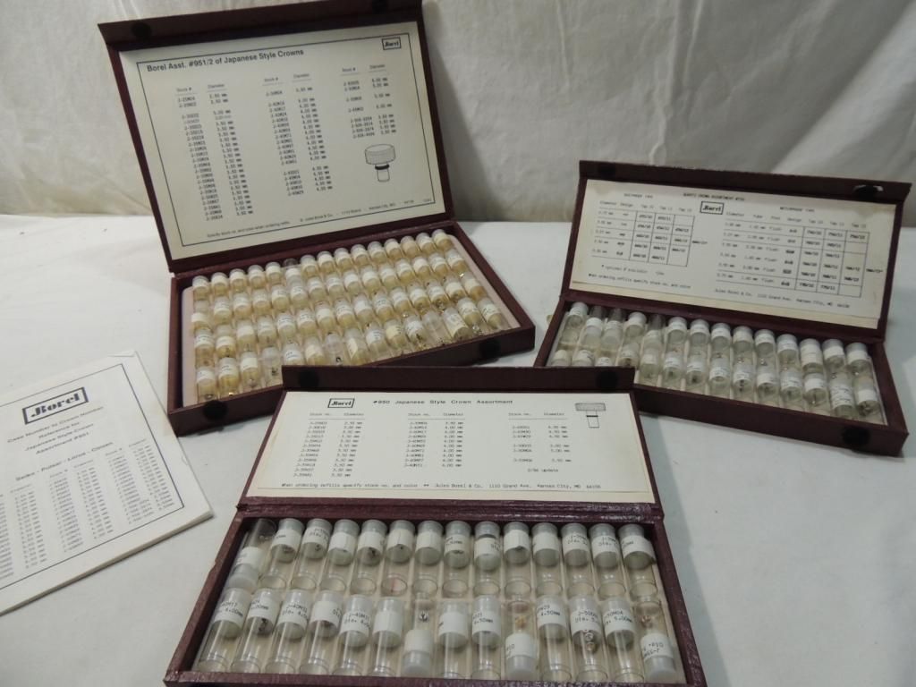 PROFESSIONAL WATCH REPAIR WATCHMAKER REPAIR PARTS. QUARTZ CROWN ASSORTMENT, JAPANESE STYLE CROWN ASSORTMENTS. AS SHOWN SEE PHOTO FOR MORE DETAILS.