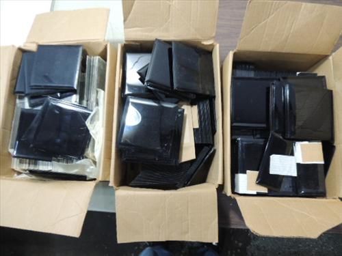 LOT 3 CASES 4X4 & 2X4 BLACK PLASTIC WALL TILE. SEVERAL HUNDRED PER BOX. NOT USED. NEW IN ORIGINAL BOX. AS SHOWN. VIEW PICTURE FOR DETAIL.