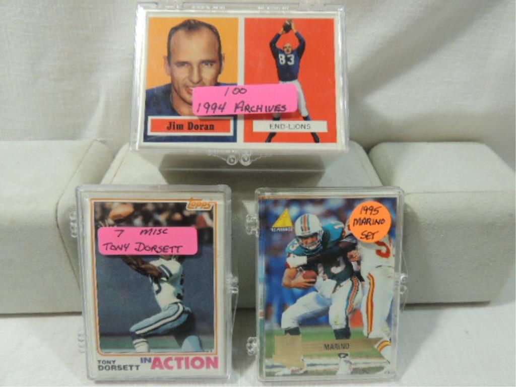 3 CASES. 116 CARDS TOTAL. 1995 PINNACLE DAN MARINO FOOTBALL CARDS SET. 100 1994 ARCHIVES. 7 1980S TONY DORSETT FOOTBALL PLAYER CARDS. AS SHOWN. VIEW PICTURE FOR DETAIL
