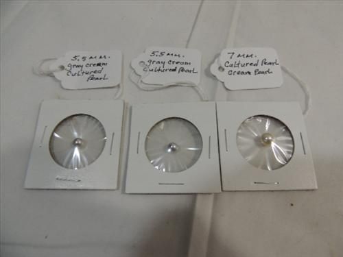 LOT 3 CULTURED PEARLS SIZE (2) 5.5MM & 7MM. AS SHOWN. VIEW PICTURE FOR DETAIL.