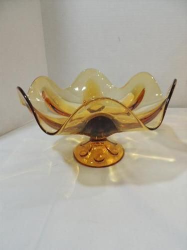 LOT 3 DECORATIVE AMBER CARNIVAL GLASS: COMPOTE,