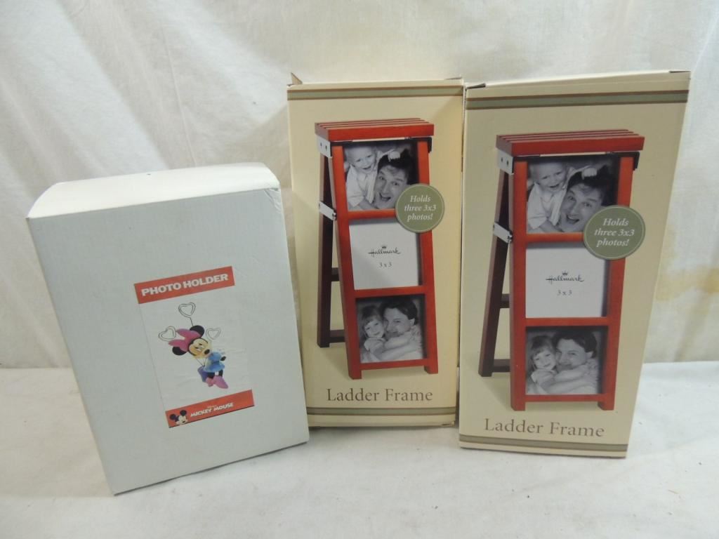 LADDER FRAME DISNEY MINNIE MOUSE FRAME, PHOTO HOLDER, HOLDS THREE 3X3 PHOTOS AS SHOWN SEE PHOTO FOR MORE DETAILS.
