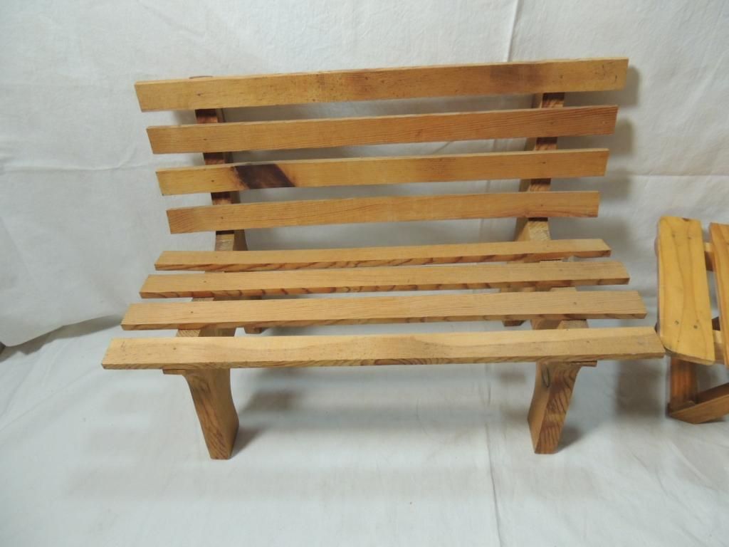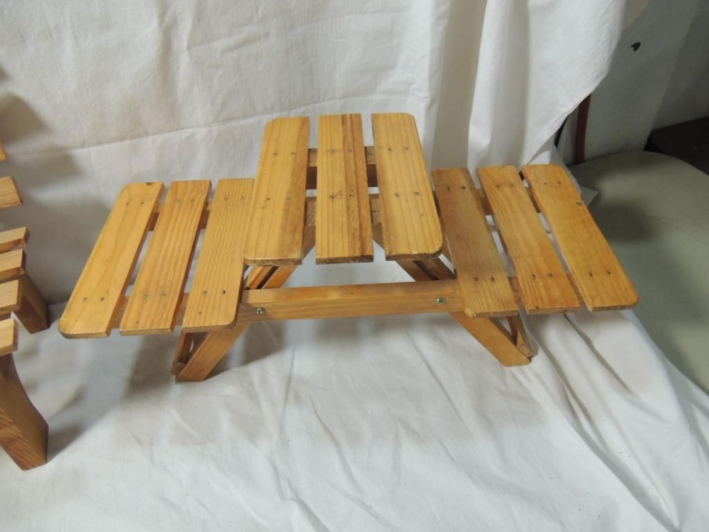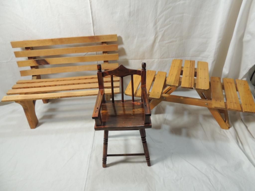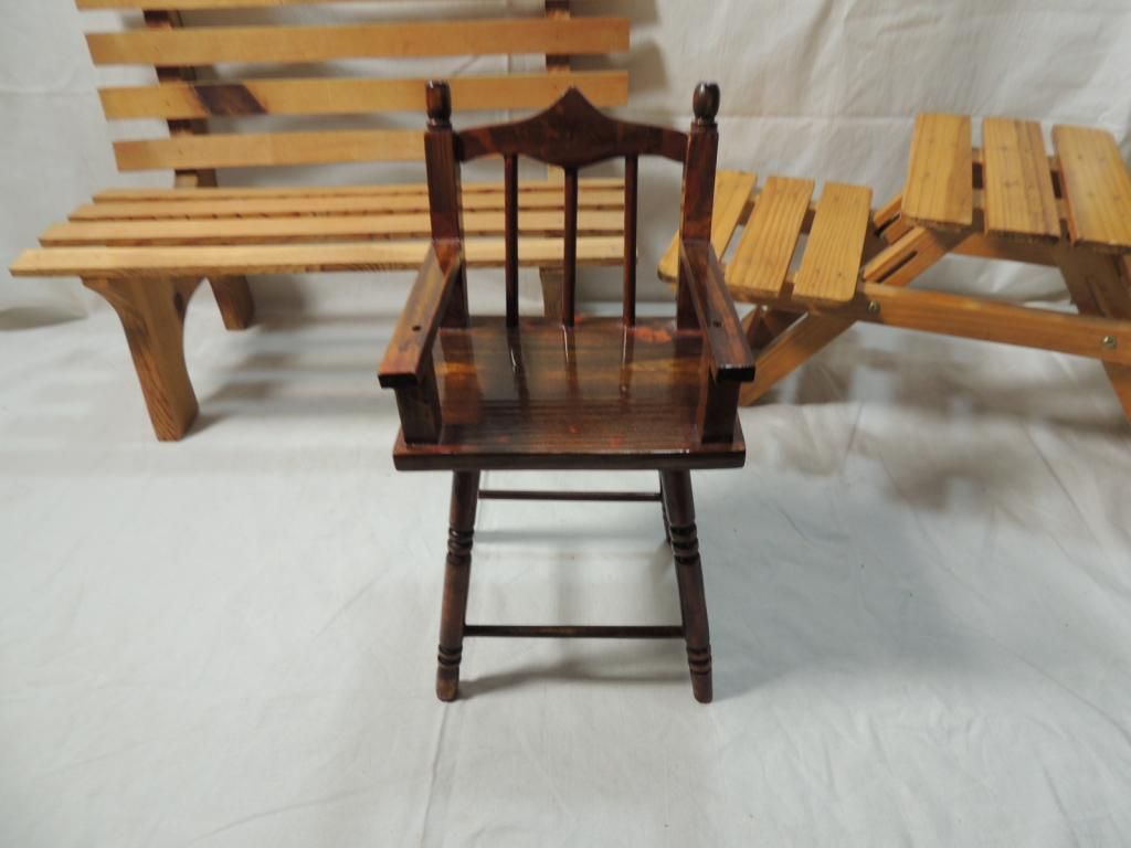 LOT 3 DOLL ACCESSORIES CHAIR, BENCH, PICNIC TABLE
