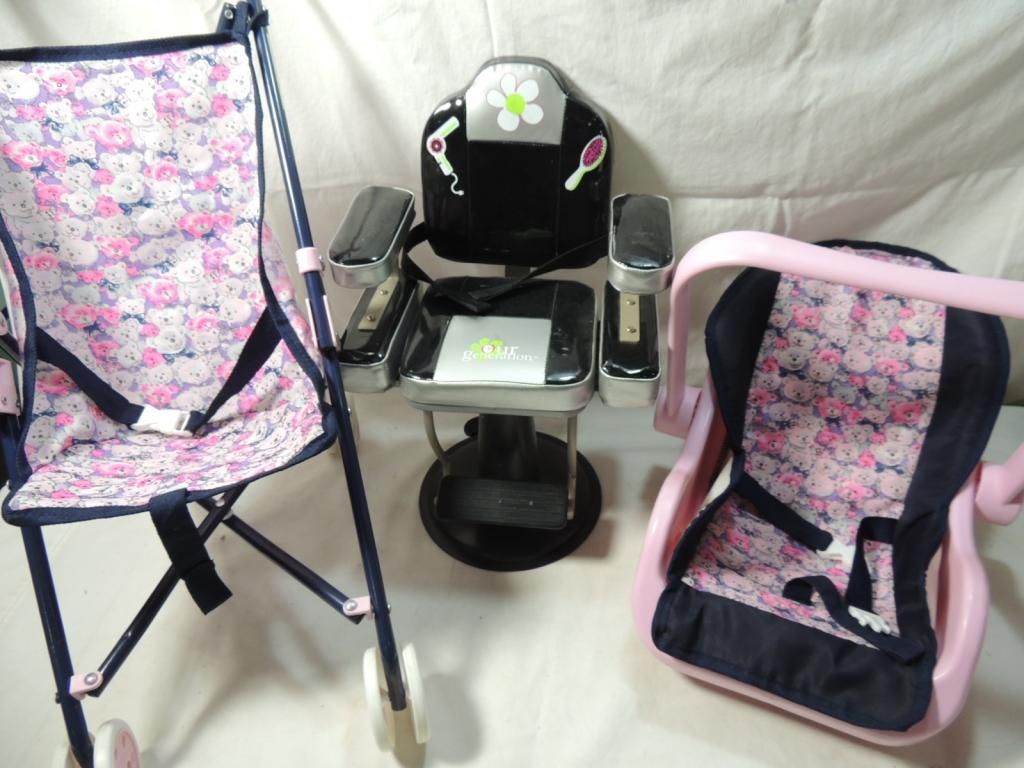 LOT 3 DOLL ACCESSORIES CHAIR, STROLER, CAR SEAT