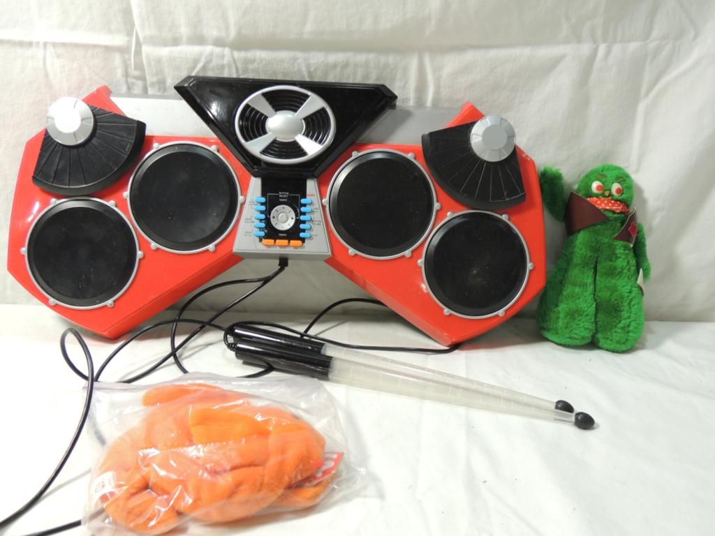 ELECTRIC DRUM. GUMBY STUFFED TOY AND BEANIE BABIE TOY AS SHOWN SEE PHOTO FOR MORE DETAILS.