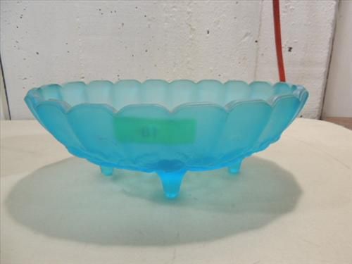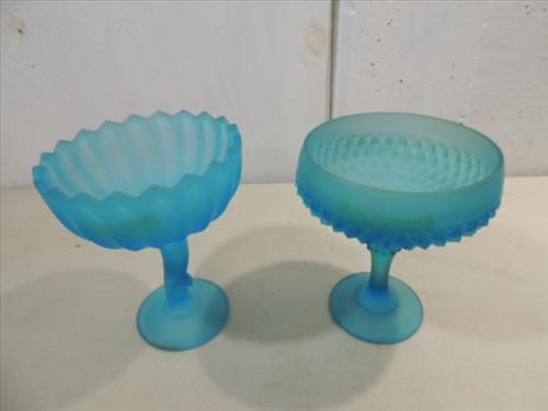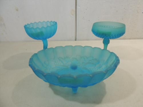 LOT 3 VINTAGE FENTON FROSTED BLUE GLASSWARE: 2 STEM COMPOTES & 1 LARGE FOOTED TABLE CENTER PIECE. AS SHOWN. VIEW PICTURE FOR DETAIL.
