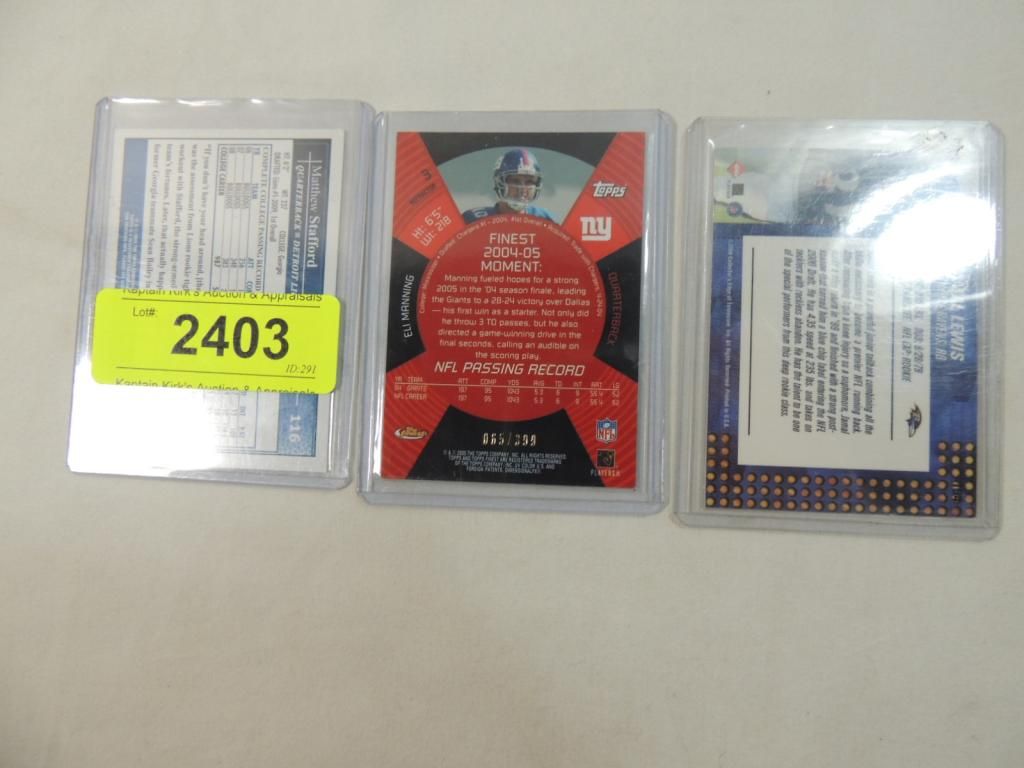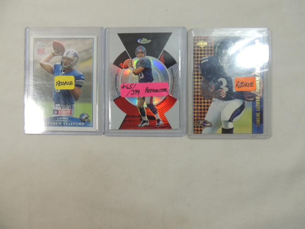 3 FOOTBALL CARDS. GIANTS ELI MANNING, RAVENS JAMAL LEWIS, GIANTS ELI MANNING. FOOTBALL PLAYER CARDS. TRADING CARDS. COLLECTIBLE. FOOTBALL MEMORABILIA. GOOD CONDITION AS SHOWN. SEE PHOTO FOR MORE DETAILS.