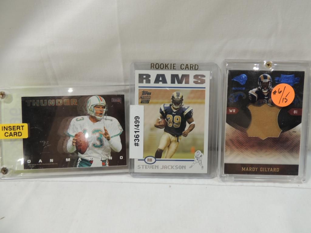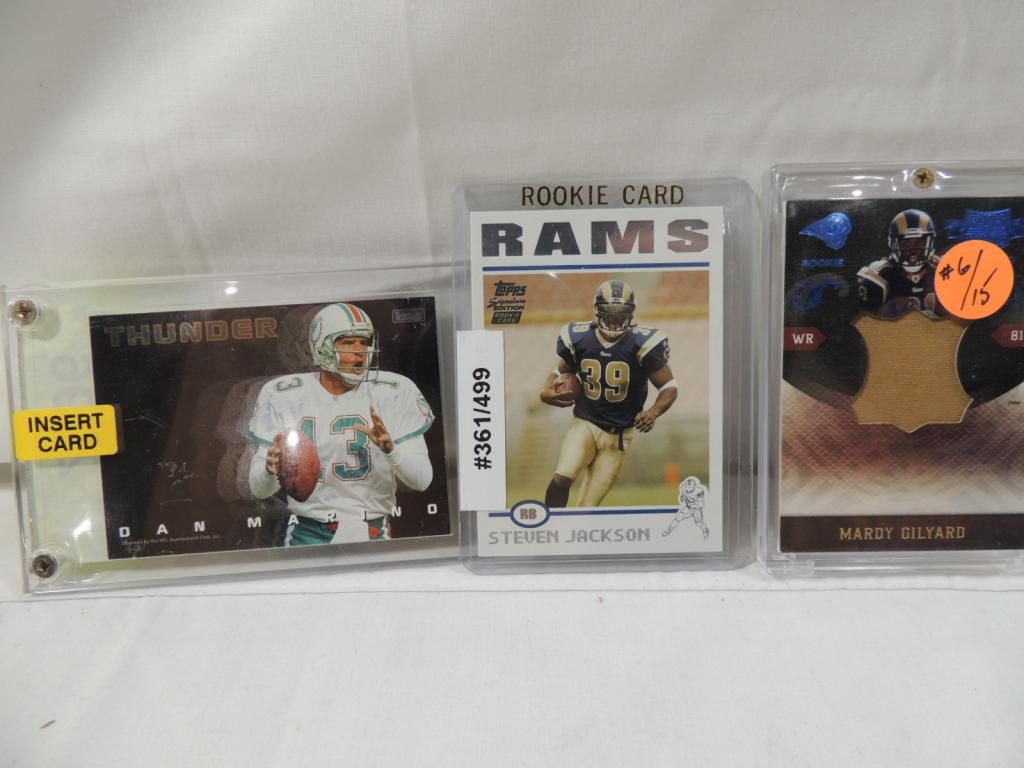 STEVE JACKSON ROOKIE CARD, DAN MARINO, MARDY GILYARD. FOOTBALL PLAYER CARD. FOOTBALL TRADING CARDS. GOOD CONDITION. AS SHOWN. SEE PHOTO FOR MORE DETAILS.