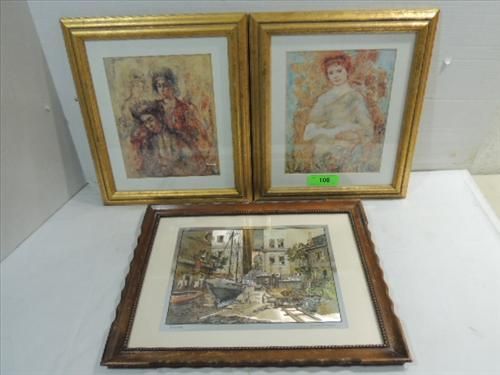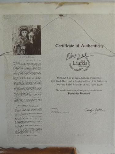 LOT 3 FRAMED PRINTS (2) COA FROM HIBEL MUSEUM THE LAURELS COLLECTIONS & 1 METAL ART. 13X15. AS SHOWN. VIEW PICTURE FOR DETAIL.