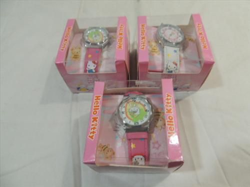 LOT 3 GIRLS QUARTZ HELLO KITTY WRIST WATCHES. AS SHOWN. VIEW PICTURE FOR DETAIL.