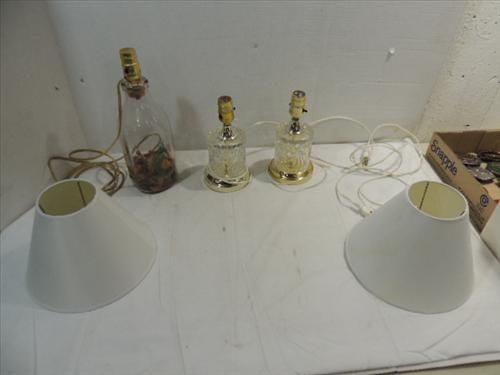 LOT 3 GLASS BASE DESK OR SIDE LIGHTS. 2 ARE MATCH PAIR. AS SHOWN. VIEW PICTURE FOR DETAIL.
