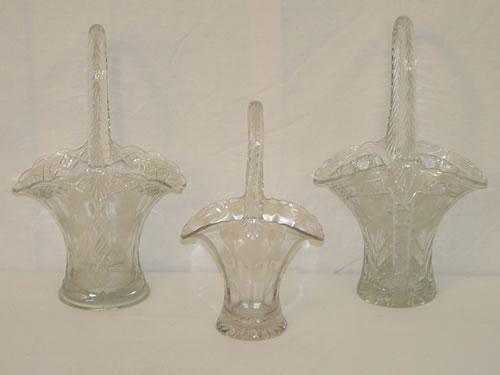 LOT (3) GLASS HANDLED CUT BASKETS: (2) 12" & (1) 9 1/2" - WEAR
