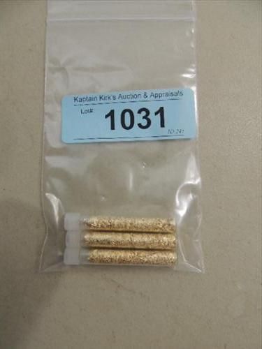 LOT 3 GOLD FLAKE VIALS.  AS SHOWN.  VIEW PICTURE FOR DETAIL.