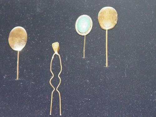 LOT (3) GOLD STICK PINS and (1) GOLD HAIRPIN;