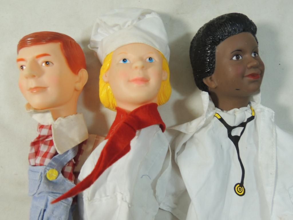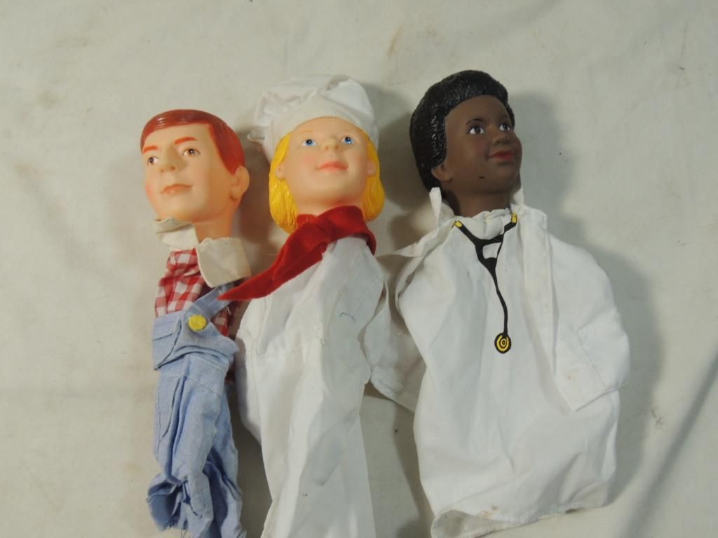 TEACHING AND PUPPETS, CAREER PUPPETS, PLASTIC HEAD HAND PUPPETS. AS SHOWN SEE PHOTO FOR MORE DETAILS.