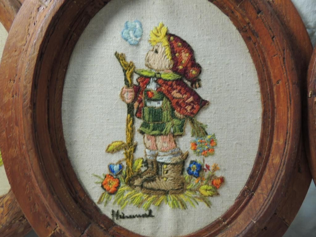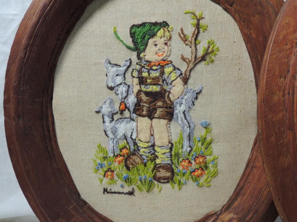 GERMAN? HUMMEL NEEDLEPOINT BOY AND GIRL NEEDLE POINT FRAMED ART. VTG ESTATE LOT NEEDLEPOINT CREWEL EMBROIDERED HUMMEL FRAMED PICTURE PLAQUE SET VINTAGE NEEDLE POINT. AS SHOWN.SEE PHOTO FOR MORE DETAILS.
