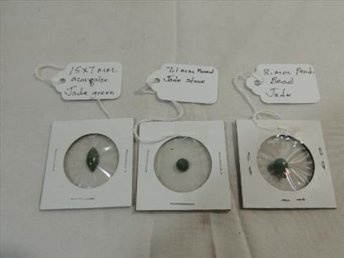 LOT 3 JADE STONE CUT & SIZE: 15X7MM MARQUISE, 8MM