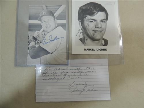 LOT 3 JSA CERT AUTOGRAPHED BASEBALL PHOTO: JOHNNY PODRES JSA #J50064, BILL FREEHAN, MARCEL DIONNE. COA STICKER FROM JSA. AS SHOWN. VIEW PICTURE FOR DETAIL. PLEASE BE ADVISED, AND INFORMED REGARDING SIGNATURES OR AUTOGRAPHS THAT WE SELL AT AUCTION: WE ARE NOT AUTHENTICATORS, AND WE DO NOT AUTHENTICATE, OR VALIDATE ANY AUTOGRAPHS OR SIGNATURES THAT WE OFFER AT AUCTION. SOME AUTOGRAPHS OR SIGNATURES MAY COME WITH AN AUTHENTICATION FROM ANY ONE OF LITERALLY HUNDREDS OF AUTHENTICATORS ACROSS THE COUNTRY, AND AROUND THE WORLD. WE DO NOT ENDORSE ANY AUTHENTICATOR, NOR DO WE GUARANTEE THAT ANY AUTOGRAPH OR SIGNATURE IS AUTHENTIC, OR THAT IT WILL PASS AUTHENTICATION BY ANY AUTHENTICATOR. ALL AUTOGRAPHS OR SIGNATURES ARE SOLD