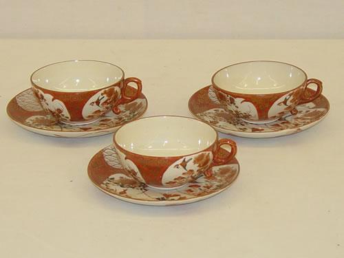 LOT (3) KUTANI CUPS & SAUCERS-ALL SIGNED - WEAR