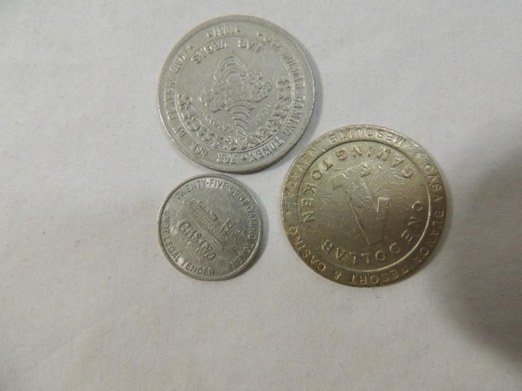 CASA BLANCA RESORT CASINO ONE DOLLAR GAMING TOKEN, CIRCUS CIRCUS LAS VEGAS GAMING TOKEN ONE DOLLAR TOKEN, 25 CENT CAMING TOKEN AS SHOWN SEE PHOTO FOR MORE DETAILS.