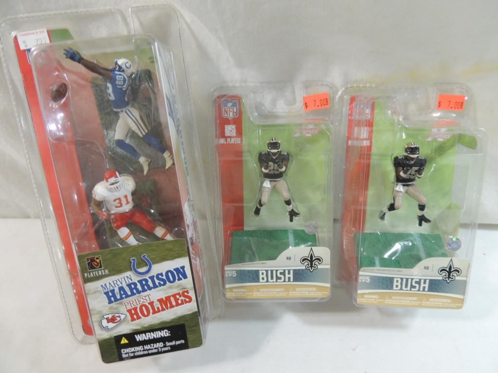SMALL FIGURES HUGE DETAIL. REGGIE BUSH, MARVIN HARRISON, PRIEST HOLMES, COLLECTIBLE. ACTION FIGURES, FIGURES, FOOTBALL COLLECTIBLE AS SHOWN SEE PHOTO FOR MORE DETAILS.
