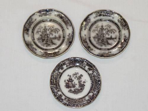 LOT (3) MULBERRY CHINA CUP PLATES-VARIOUS PATTERNS - (2) W/ SMALL HAIRLINES;