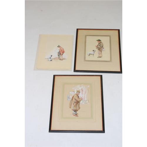 LOT (3) NANCY A. DYER PAINTINGS - (3) SIGNED WATERCOLOR GOUACHE PORTRAITS OF HOBOS-(2) FRAMED W/ F.A. SAYLES LABELS & TILDEN THURBER FINE ART DEALERS LABEL & (1) UNFRAMED (FRAMED-10.75" X 8", UNFRAMED-15" X 11") - MINOR STAINS, SPOTTING, IMPERFECTIONS