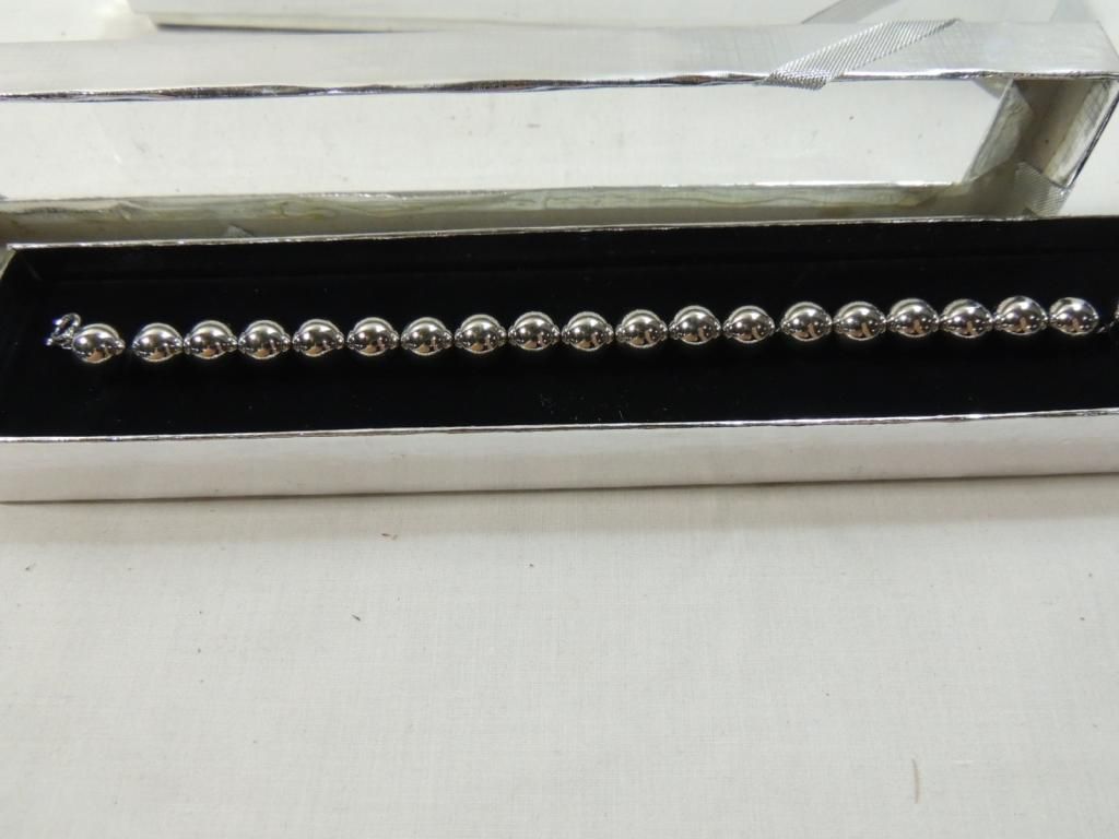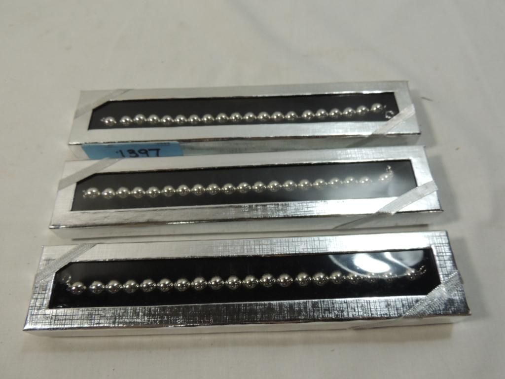 3 NEW SILVER BEAD BRACELET NEW IN BOX AS SHOWN. SEE PHOTO FOR MORE DETAILS.