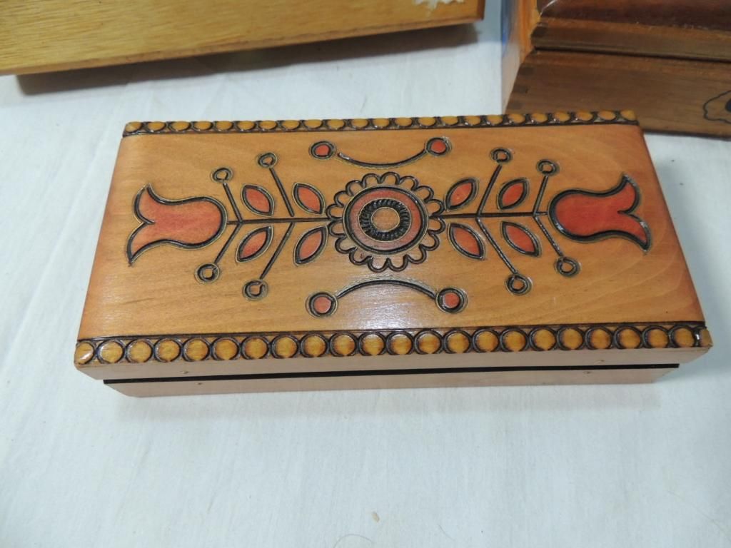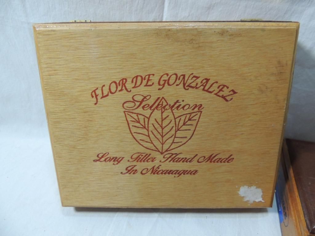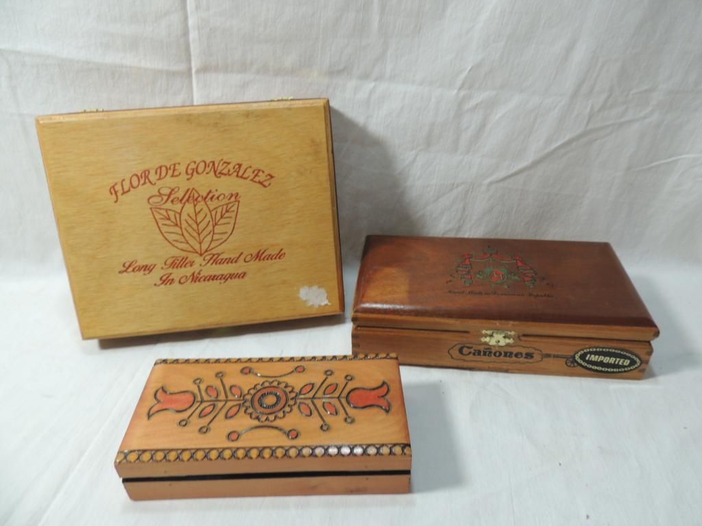 NICE WOODEN CIGAR BOXES. CARVED WOOD, AS SHOWN. SEE PHOTO FOR MORE DETAILS.