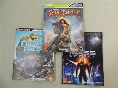 LOT 3 OFFICIAL GAME GUIDES: JADE EMPIRE, MASS EFFECT, LITTLE BIG PLANET. AS SHOWN. VIEW PICTURE FOR DETAIL.