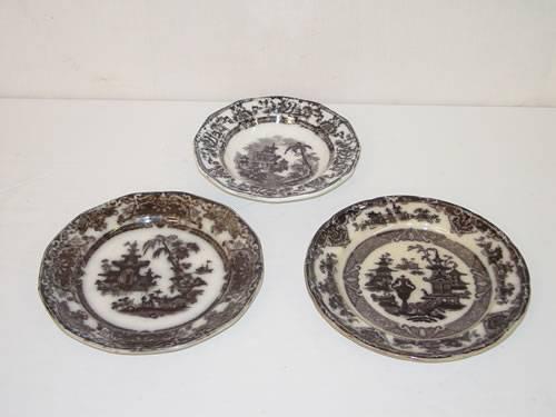 LOT (3) PCS. MULBERRY CHINA: 8 1/2" CYPRUS SOUP, 9 1/2" COREAN PLATE, & 9 3/4" TEMPLE PLATE - STAINING & WEAR;