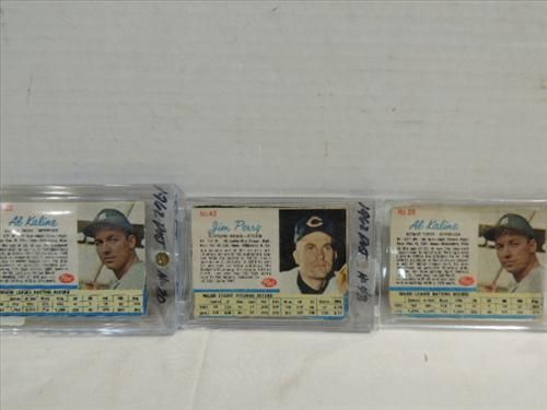 LOT 3 POST CEREAL BASEBALL CARDS: 1962 #20 KALINE, 1962 #43 PERRY & 1962 #20 KALINE. AS SHOWN. VIEW PICTURE FOR DETAIL.