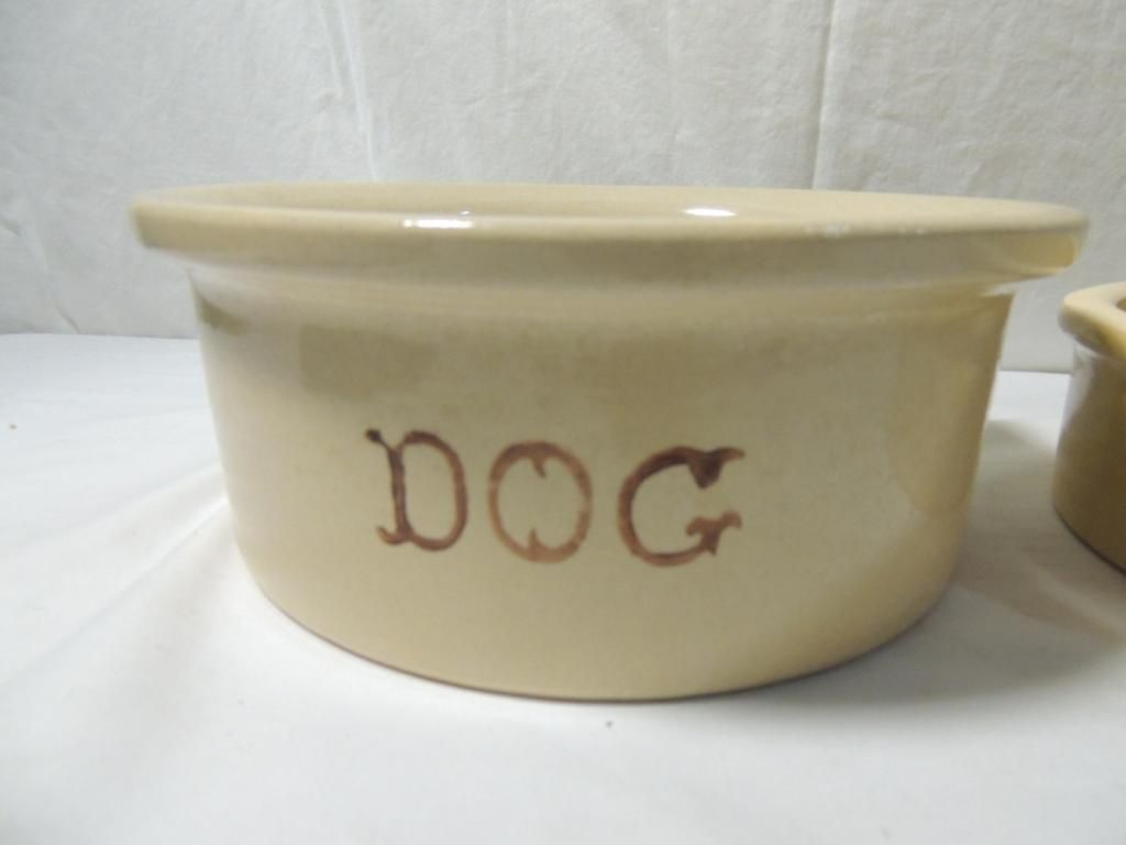 ROSEVILLE OHIO ART POTTERY DOG PUPPY K9 FOOD WATER BOWL 5.5 FEEDER RRPCO USA