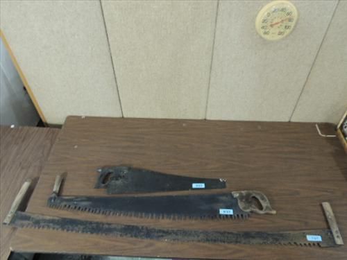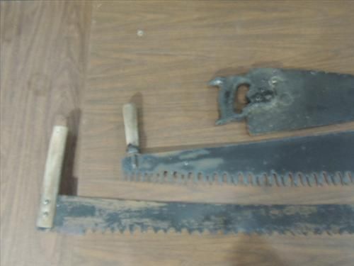 LOT 3 PRIMITIVE (2) DOUBLE BACK TREE SAW & 1 CROSS CUT SAW. AS SHOWN. VIEW PICTURE FOR DETAIL.