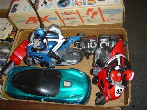 LOT INCLUDES: (2) TYCO RC MOTORCYCLES, AND NADA 2009 CORVETTE ZR-1. CONTROLS INCLUDE: MATTEL TYCO (FOR MOTORCYCLE), (2) JADA HEAT, AND ONE UNMARKED. AS SHOWN. VIEW PICTURE FOR DETAIL.