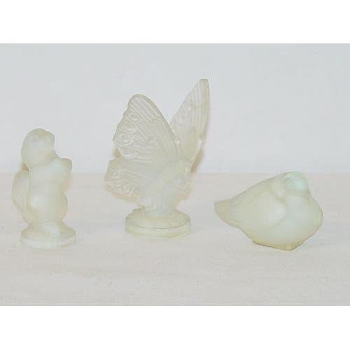 LOT (3) SABINO ART GLASS FIGURES - (1) 2 3/4" BUTTERFLY, (1) 2" BIRD & (1) 2" SITTING DOG-(2) MARKED SABINO FRANCE, DOG MARKED SABINO PARIS - CHIP ON BIRD'S FOOT