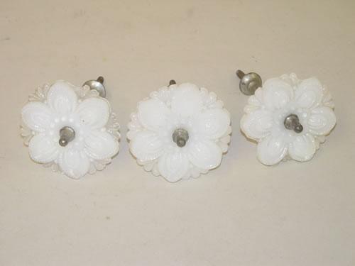 LOT (3) SANDWICH GLASS TIEBACKS W/ PEWTER SHANKS- 3" CLAMBROTH COLOR - CHIPS & IMPERFECTIONS