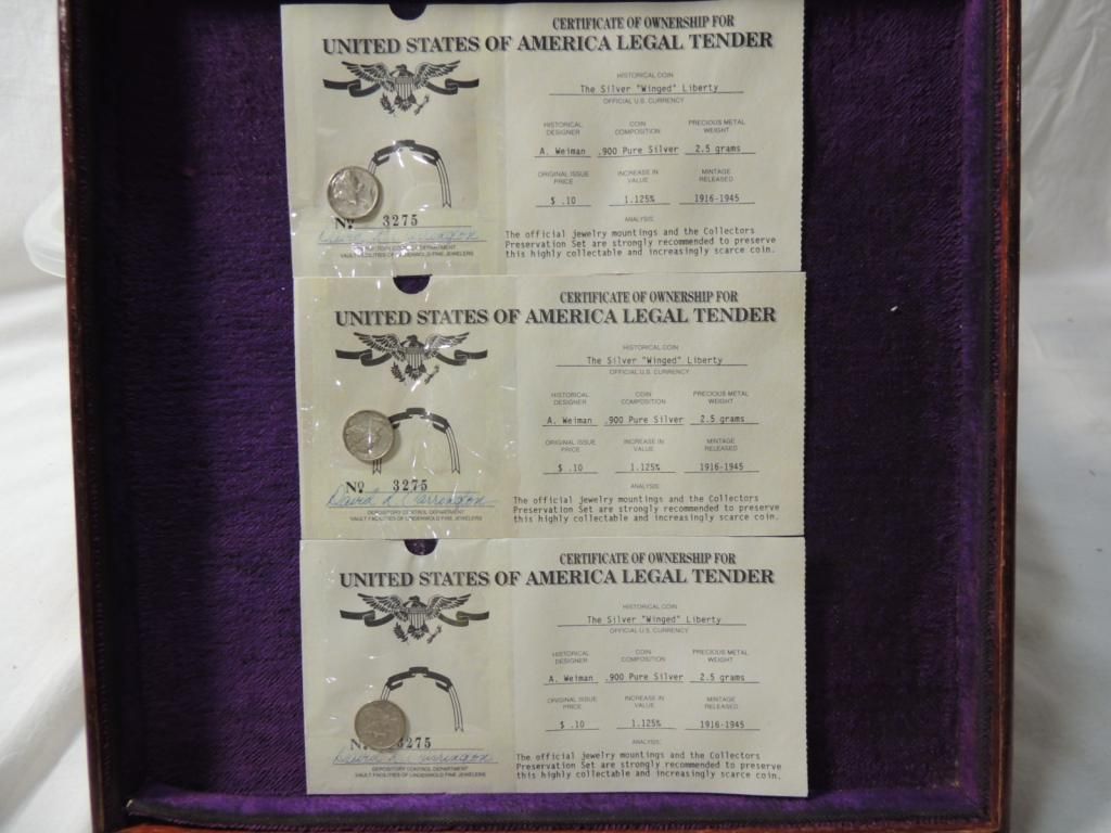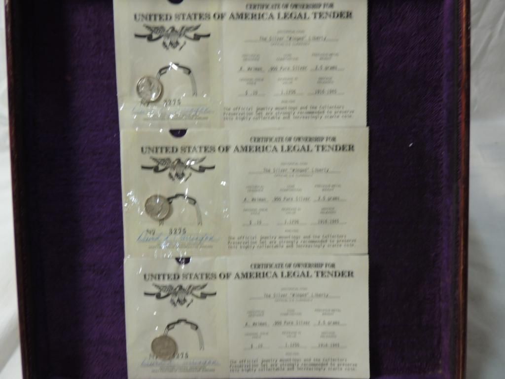 CERTIFICATE OF OWNERSHIP FOR UNITED STATES OF AMERICA LEGAL TENDER. SILVER WINGED LIBERTY DIMES. AUS CURRENCY. COIN COLLECTIBLE. MONEY COLLECTIBLE. AS SHOWN. SEE PHOTO FOR MORE DETAILS.