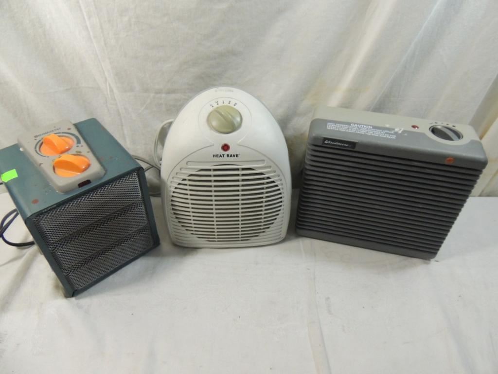 SMALL PERSONAL HEATERS, SPACE HEATERS, HEAT RAVE, PATTON, WINDMERE, AS SHOWN SEE PHOTO FOR MORE DETAILS.