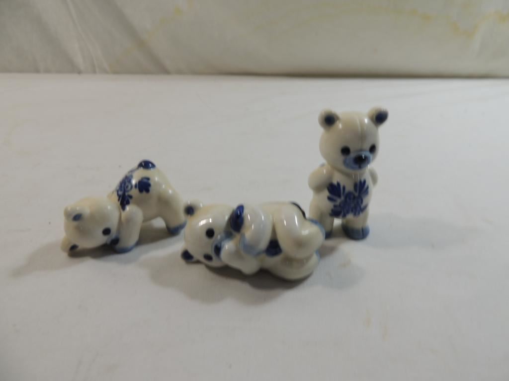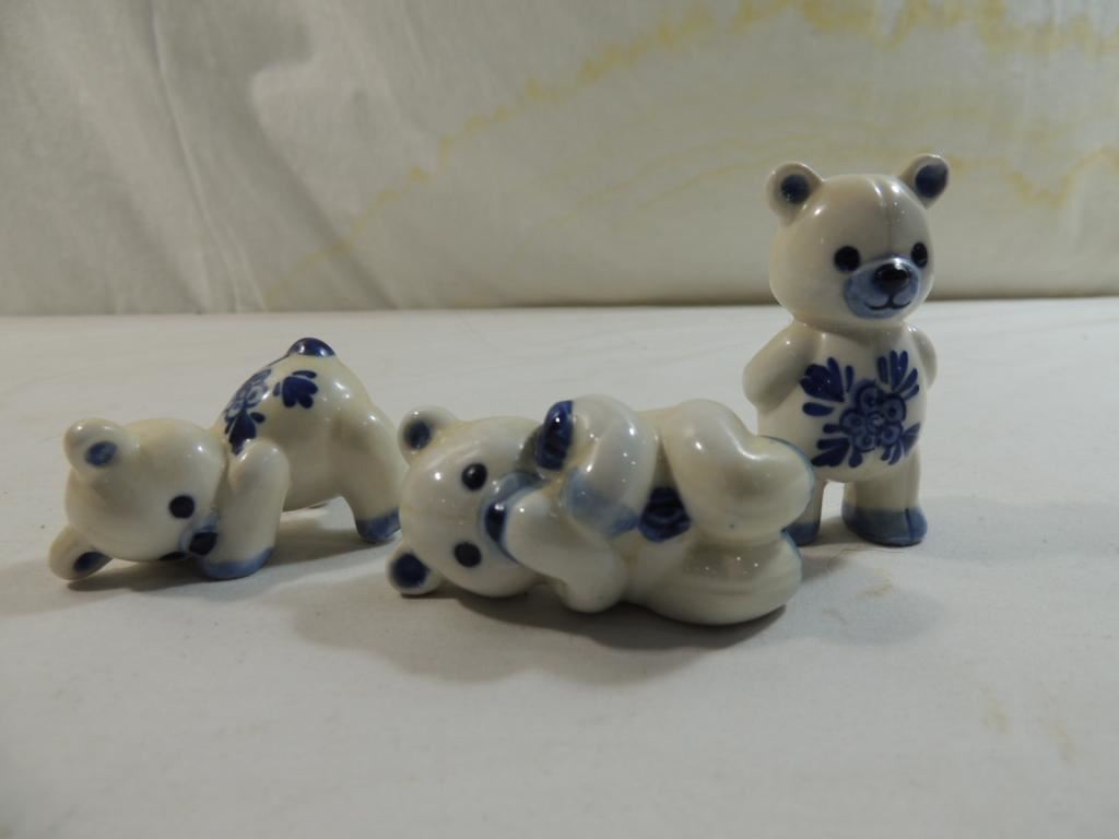 BLUE & WHITE HAND PAINTED TRINKET BEARS TEDDY BEARS AS SHOWN SEE PHOTO FOR MORE DETAILS.