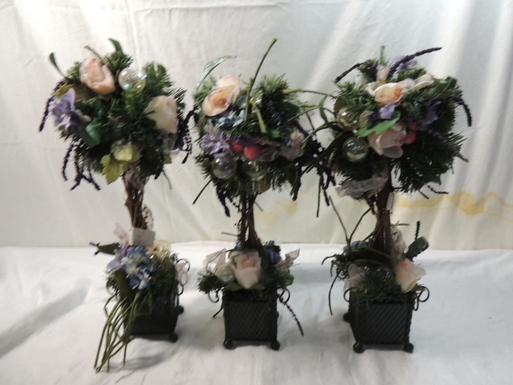 FAUX ARTIFICAL FLOWER AND EVERGREEN TOPIARY BUBBLE, PURPLE, PINK, DECORATIVE, AS SHOWN SEE PHOTO FOR MORE DETAILS.