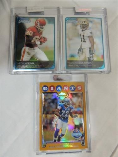 LOT 3 TOPPS CHROME SEALED FOOTBALL CARDS: ROMAN HARPER, OSI UMENYIORA & JEFF WEBB. AS SHOWN. VIEW PICTURE FOR DETAIL.