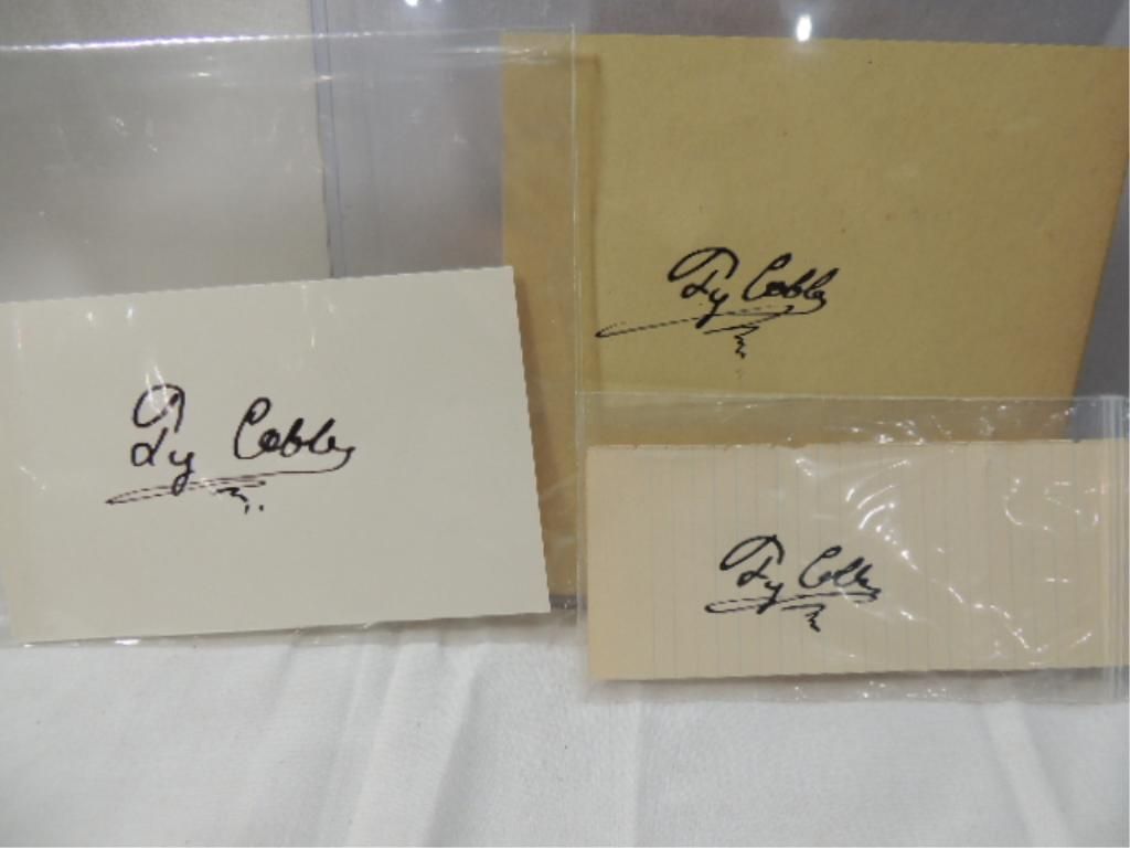 TY COBB CUT SIGNATURE AUTOGRAPH NO COA. AS SHOWN. VIEW PICTURE FOR DETAIL. PLEASE BE ADVISED, AND INFORMED REGARDING SIGNATURES OR AUTOGRAPHS THAT WE SELL AT AUCTION: WE ARE NOT AUTHENTICATORS, AND WE DO NOT AUTHENTICATE, OR VALIDATE ANY AUTOGRAPHS OR SIGNATURES THAT WE OFFER AT AUCTION. SOME AUTOGRAPHS OR SIGNATURES MAY COME WITH AN AUTHENTICATION FROM ANY ONE OF LITERALLY HUNDREDS OF AUTHENTICATORS ACROSS THE COUNTRY, AND AROUND THE WORLD. WE DO NOT ENDORSE ANY AUTHENTICATOR, NOR DO WE GUARANTEE THAT ANY AUTOGRAPH OR SIGNATURE IS AUTHENTIC, OR THAT IT WILL PASS AUTHENTICATION BY ANY AUTHENTICATOR. ALL AUTOGRAPHS OR SIGNATURES ARE SOLD