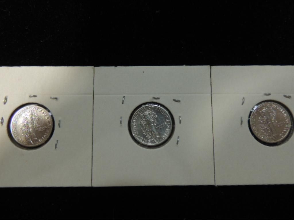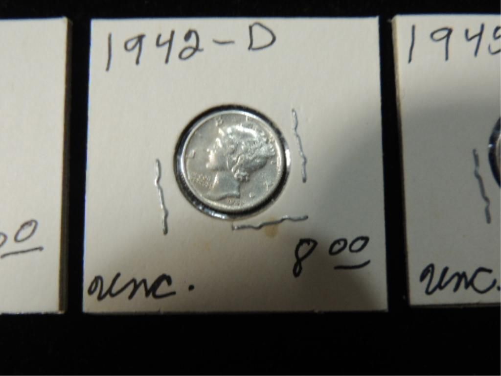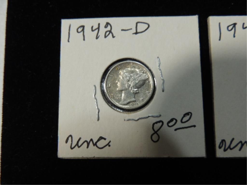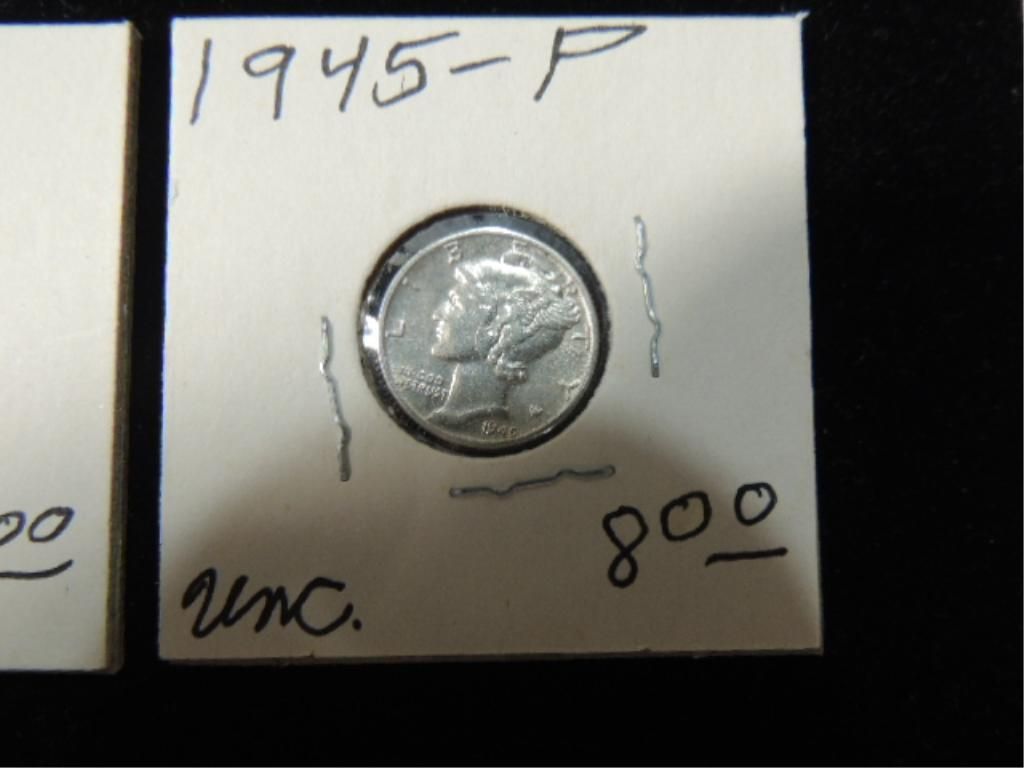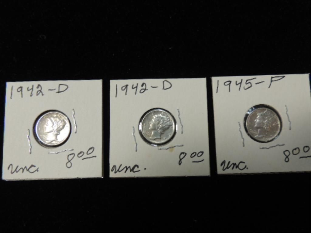 LOT 3 UNCIRCULATED DIMES 1942D, 1942D, 1945P. AS SHOWN. SEE PHOTO FOR MORE DETAILS.