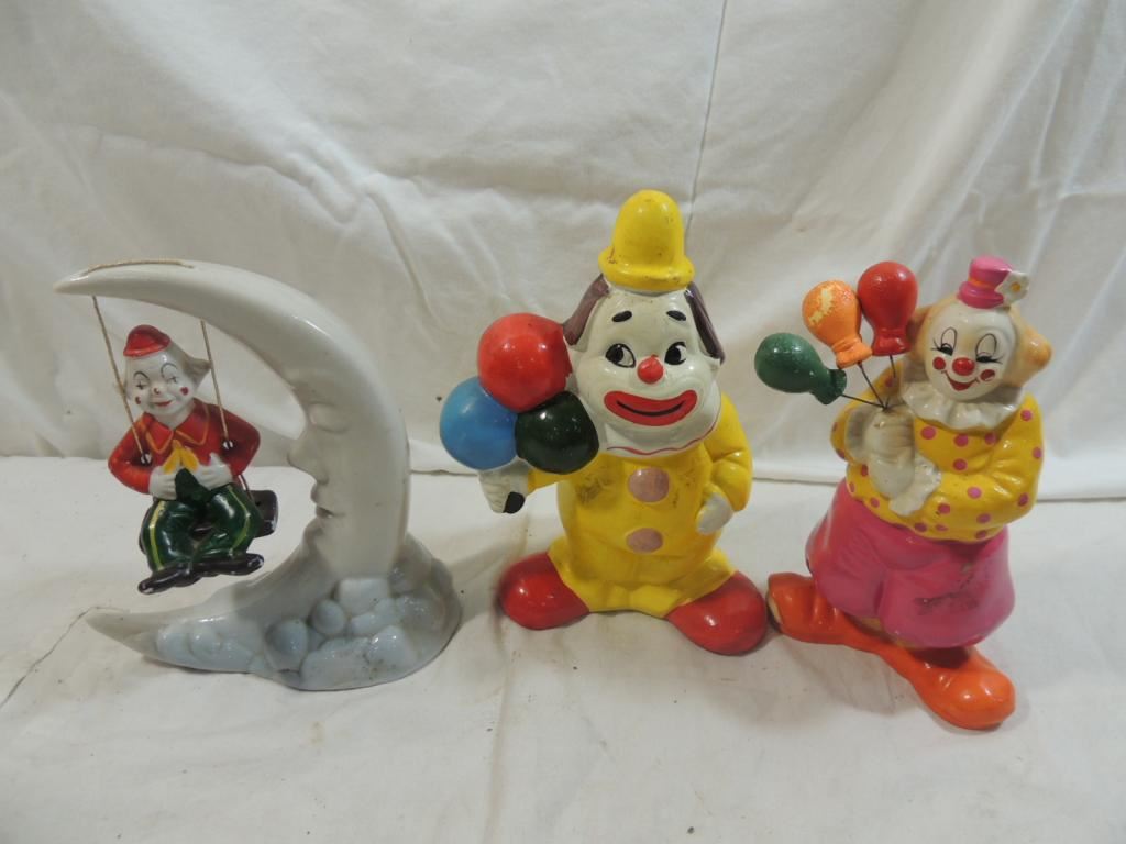VINTAGE BANK, CERAMIC CLOWN BANK, VINTAGE CLOWN BANKS, VINTAGE BANK, COIN BANK, AS SHOWN SEE PHOTO FOR MORE DETAILS.