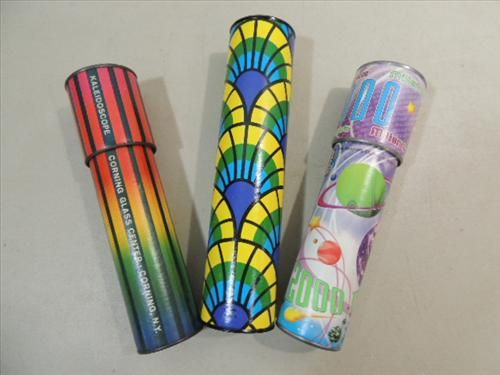 LOT 3 VINTAGE CHILDREN'S KALEIDOSCOPES. VARIOUS STYLES. AS SHOWN. VIEW PICTURE FOR DETAIL.