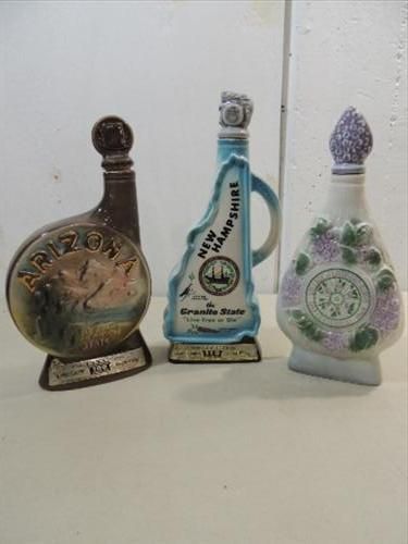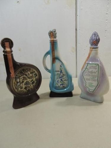 LOT 3 VINTAGE JIM BEAM WHISKEY CERAMIC DEANTERS: 1968 NEW HAMPSHIRE, 1968 ARIZONA & 1969 VILLAGE OF LOMBARD ILL.  AS SHOWN.  VIEW PICTURE FOR DETAIL.