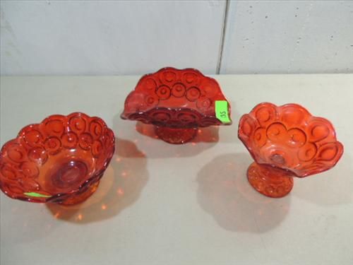 LOT 3 VINTAGE L.E. SMITH AMBERINA COMPOTE, BANANA