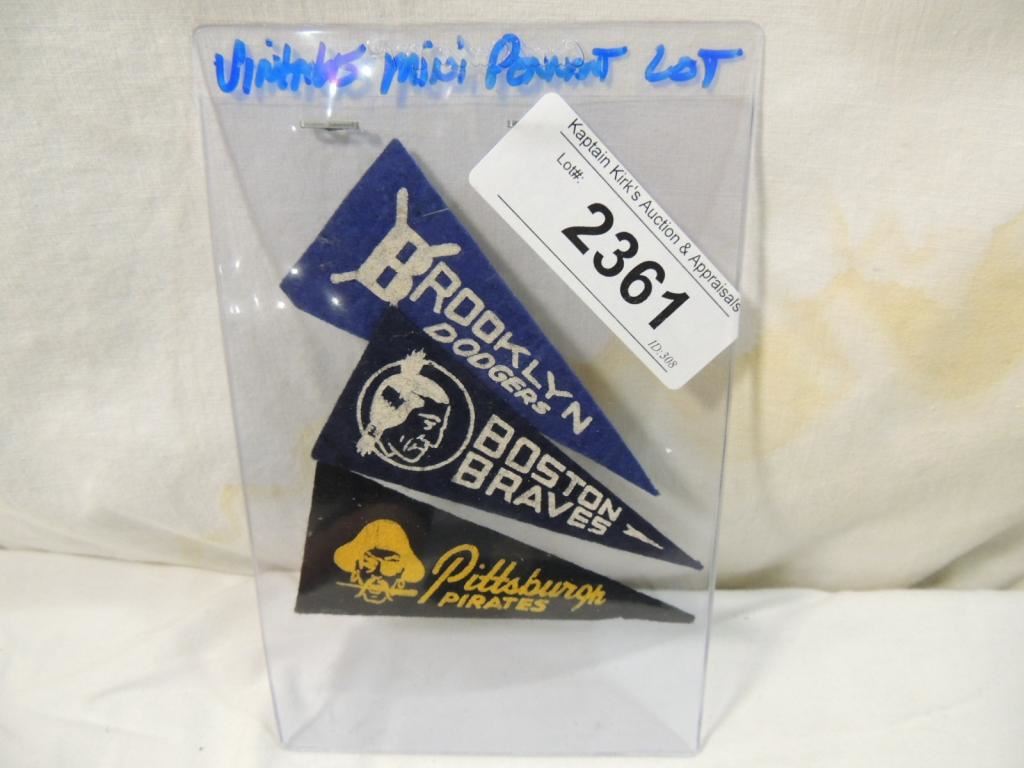 BROOKLYN DODGERS, BOSTON BRAVES, PITTSBURGH PIRATES VINTAGE MINI PENNANTS AS SHOWN SEE PHOTO FOR MORE DETAILS.
